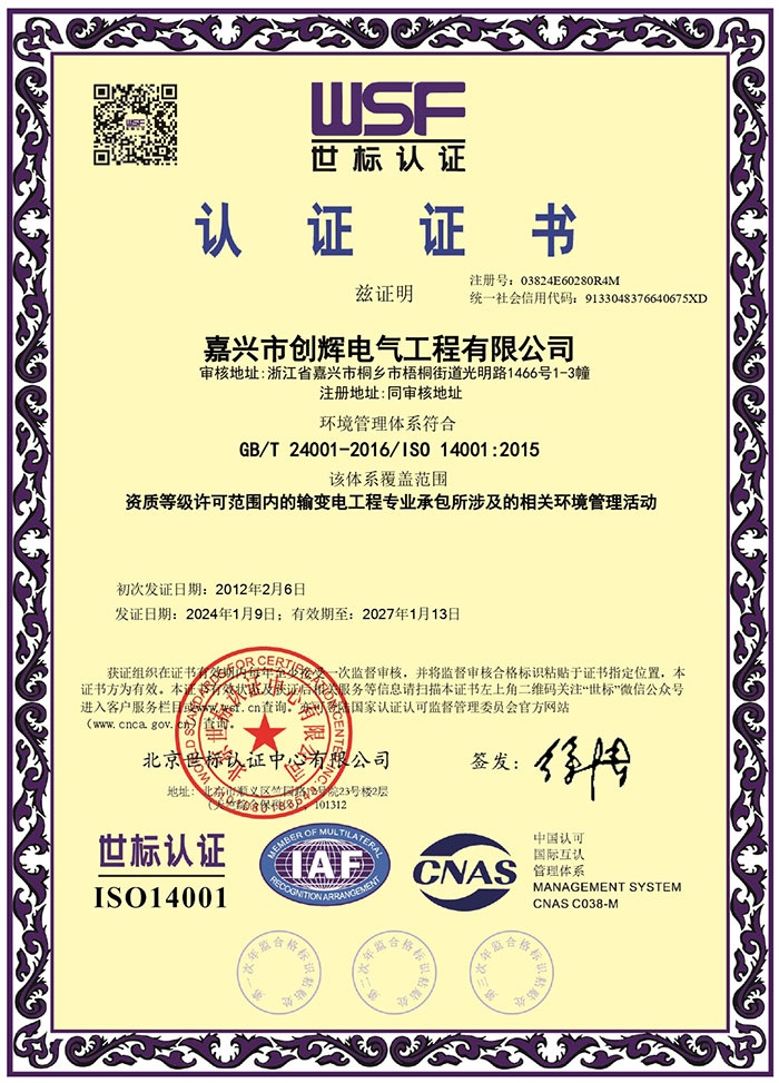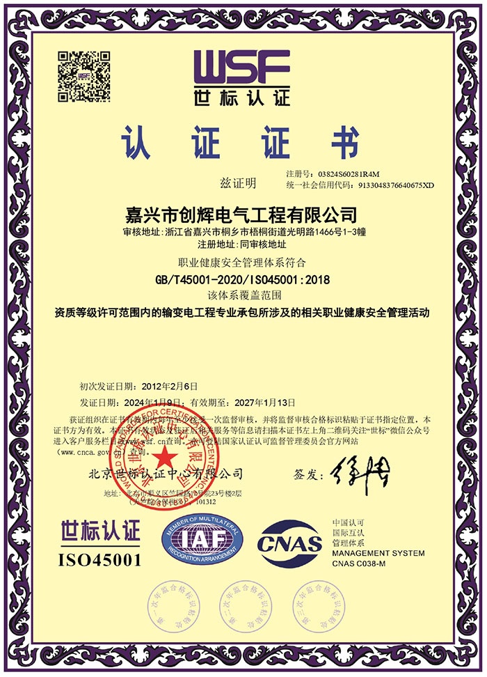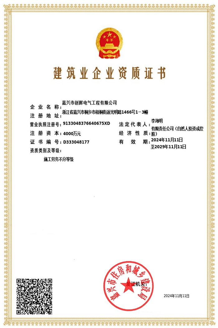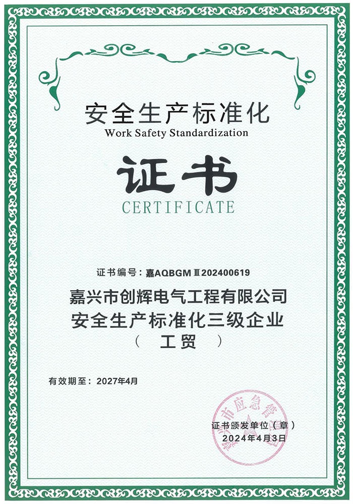 嘉興市創(chuàng)輝電氣工程有限公司,總部坐落于浙江桐鄉(xiāng)經(jīng)濟(jì)開發(fā)區(qū),公司成立于2004年,是一家承接高、低壓輸變電工程施工安裝、維修的企業(yè)。公司下設(shè)人事行政部、預(yù)結(jié)算部、采購(gòu)部、財(cái)務(wù)部、營(yíng)銷部和工程部等,其中工程部根據(jù)具體作業(yè)內(nèi)容分設(shè):變電項(xiàng)目部(12個(gè)班組)、線路項(xiàng)目部(6個(gè)班組)。現(xiàn)有員工500余人,其中擁有一級(jí)建造師3名,二級(jí)建造師15名,高級(jí)工程師1名,工程師36名,助理工程師52名,高壓電工240余名。目前我公司已具備電力工程總承包貳級(jí)資質(zhì),輸變電工程專業(yè)承包貳級(jí)資質(zhì),城市及道路照明工程專業(yè)承包貳級(jí)資質(zhì),承裝(修、試)電力設(shè)施許可二級(jí)資質(zhì),建筑施工安全生產(chǎn)許可,是浙江省高新技術(shù)企業(yè)、省AAA級(jí)“守合同重信用”企業(yè)。